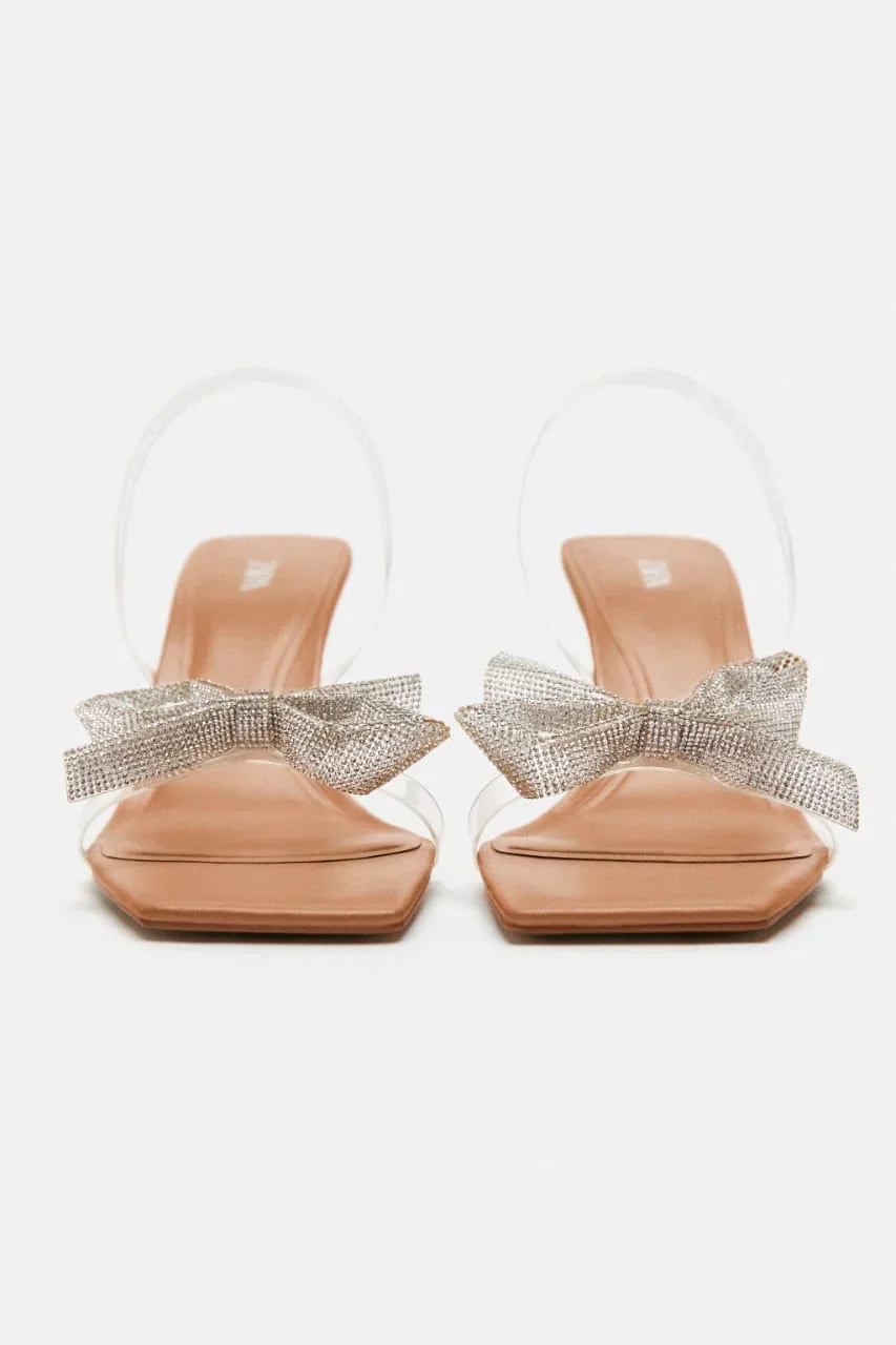 ZARA Transparent Bow Strap Heels in Beige Combine Elegance and Comfort, Making Them A Must-Have for Any Fashion-Forward Wardrobe. The Subtle Beige Tone Adds a Touch of Sophistication To Your Outfit.
